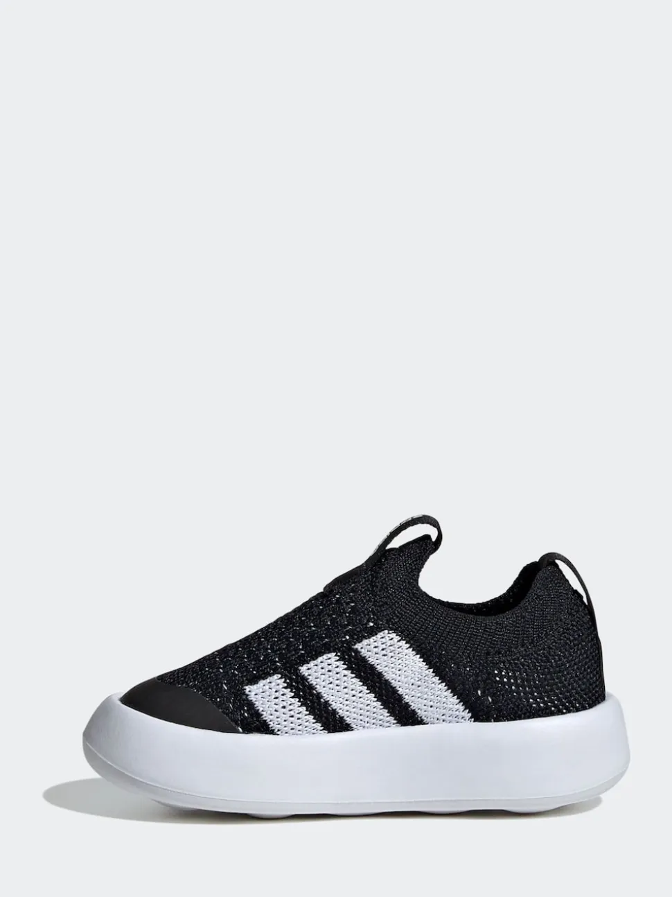 These infants Black shoes from adidas put comfort first. A super lightweight, breathable knit upper is paired with the softest ever outsole. The Bubble comfy sole is made with one piece of EVA that s flexible and ultralight. Laceless construction 100% Leather.