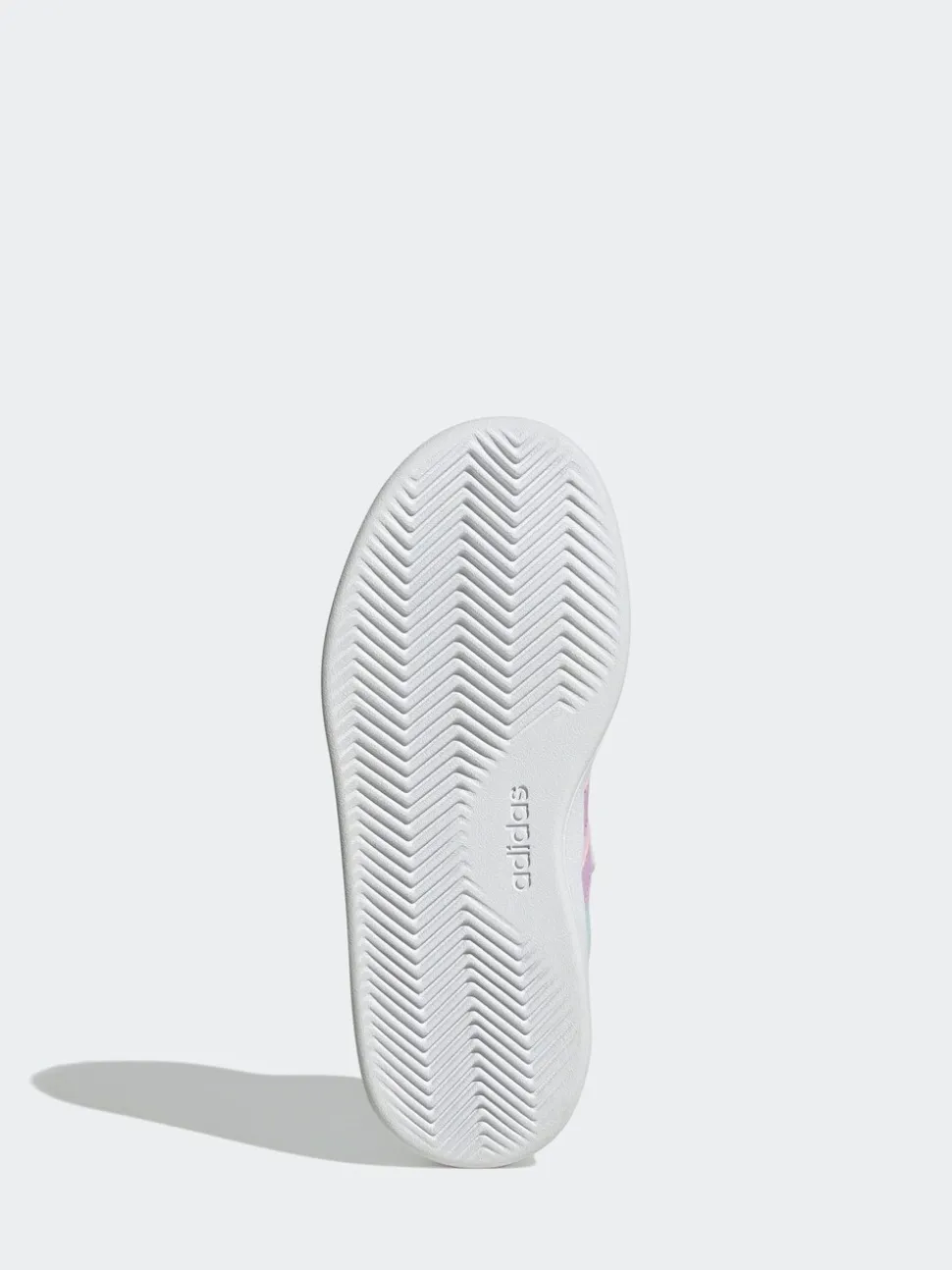 Your kiddo will be ready for adventure the moment they slip into these kids adidas shoes. The smooth upper and rubber outsole are built to keep up with busy feet. Hook-and-loop straps make them a breeze to get on and off, so there s no delay when it s time to head out the door.Elastic lace closure with hook-and-loop straps Upper – Textile, Lining and Sock – Textile, Sole – Other Materials.