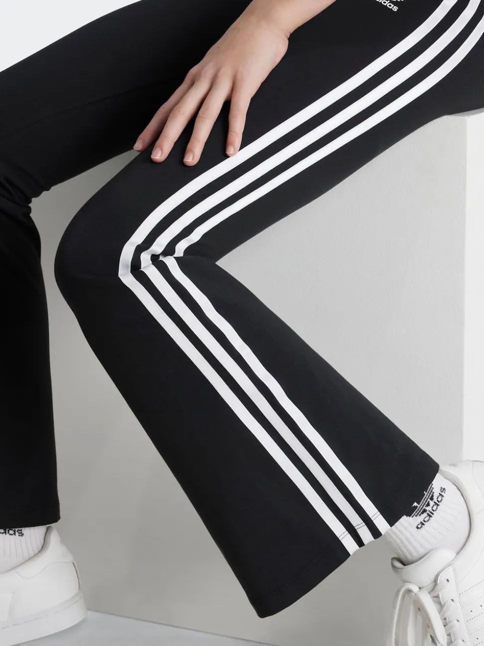 Keep it casual yet cool in this pair of junior leggings. Made of single jersey knit, the soft and stretchy fabric hugs your curves and ends at a flared leg, resulting in a flattering and comfortable fit. Contrast-colour 3-stripes run down both legs, combined with a Trefoil logo to make their sport heritage abundantly clear. Elastic waist 93% Cotton, 7% Elastane.