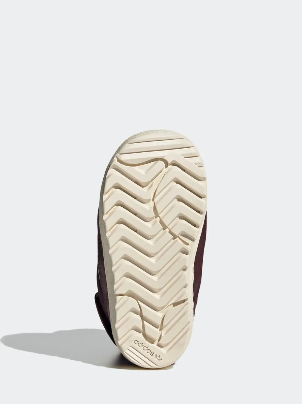 With the iconic shell toe design and a winter-ready build, these infants adidas Superstar boots are made for little ones adventures. The textile upper is water repellent to keep tiny toes dry, and the lug outsole grips the ground for stable steps. Hook-and-loop straps make them easy to slip on and off, and the flexible midsole provides nonstop comfort. Hook-and-loop strap closure. Upper – Textile, Lining and Sock – Textile, Sole – Other Materials.