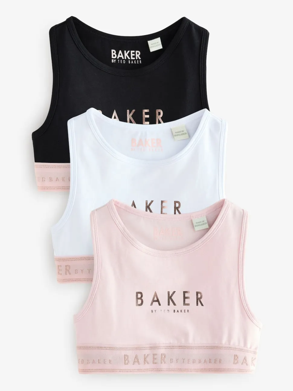 Level up her everyday style with this cool 3-pack of crop tops from Baker by Ted Baker. Featuring bold Baker branding across the chest of each top and a comfortable, branded elasticated hem to ensure a secure yet flexible fit that moves with her, they are made with soft cotton with added stretch for all-day comfort. Perfect for layering or rocking solo, these versatile and stylish crop tops are sure to become a wardrobe staple. 3 pack Baker chest branding Elasticated band 3 x Crop Top 95% Cotton, 5% Elastane.