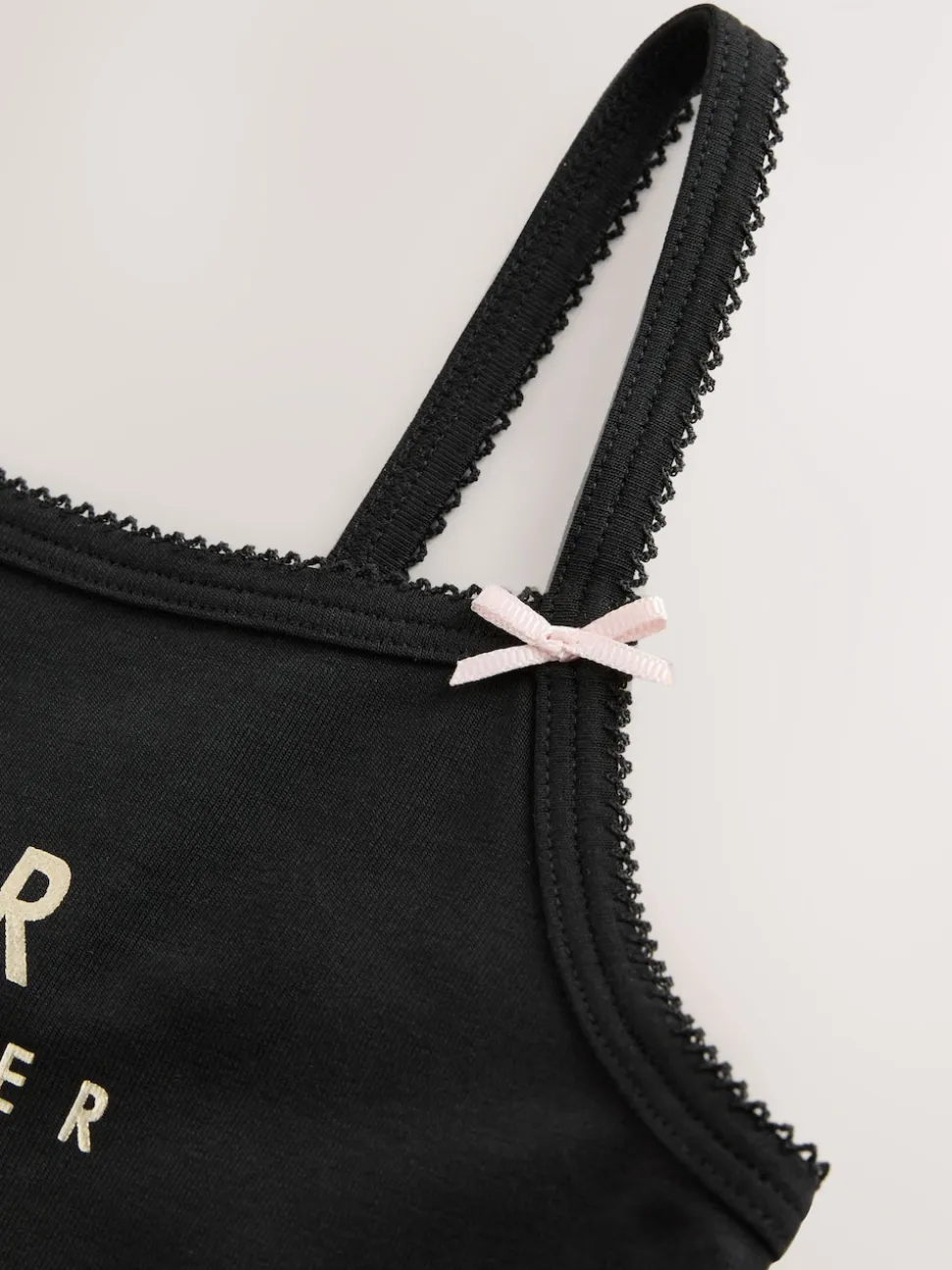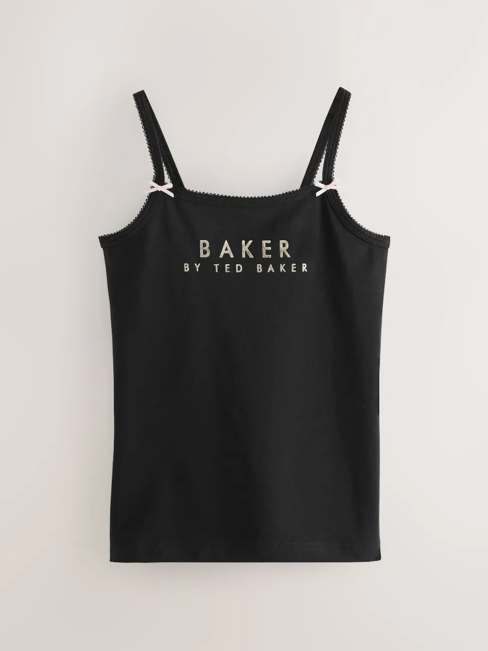 3-Pack vests Black lace trim detailing Thin straps Bow detailing on straps Baker branding on the front 3 x Vest 95% Cotton, 5% Elastane.