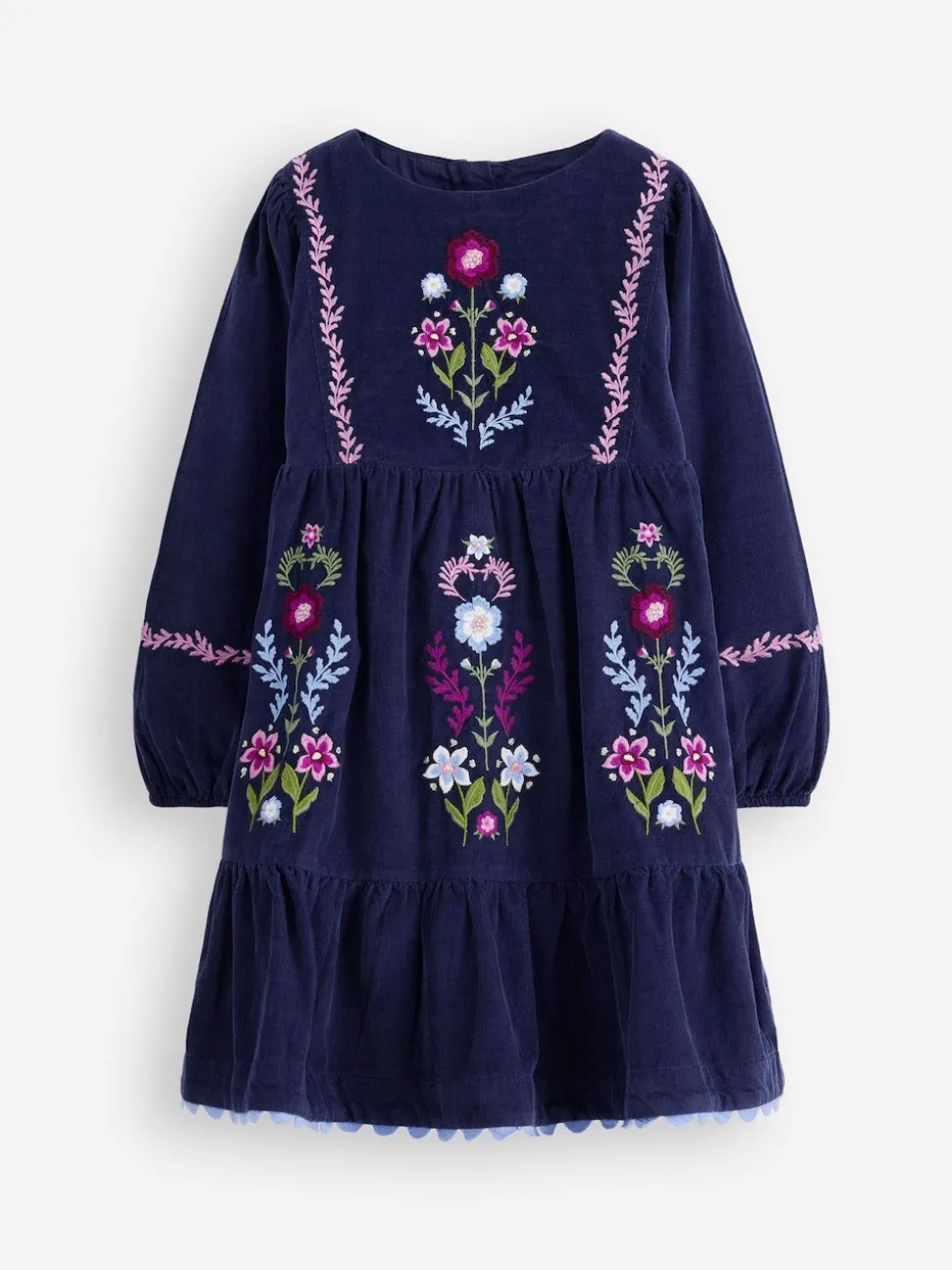 If you’re looking for a dress to treasure for years (and generations) to come, this adorable cord style is the one. It has a sparkly embroidered design, blouson sleeves and gentle gathers finished with ric rac trim. Machine washable. 100% Cotton.