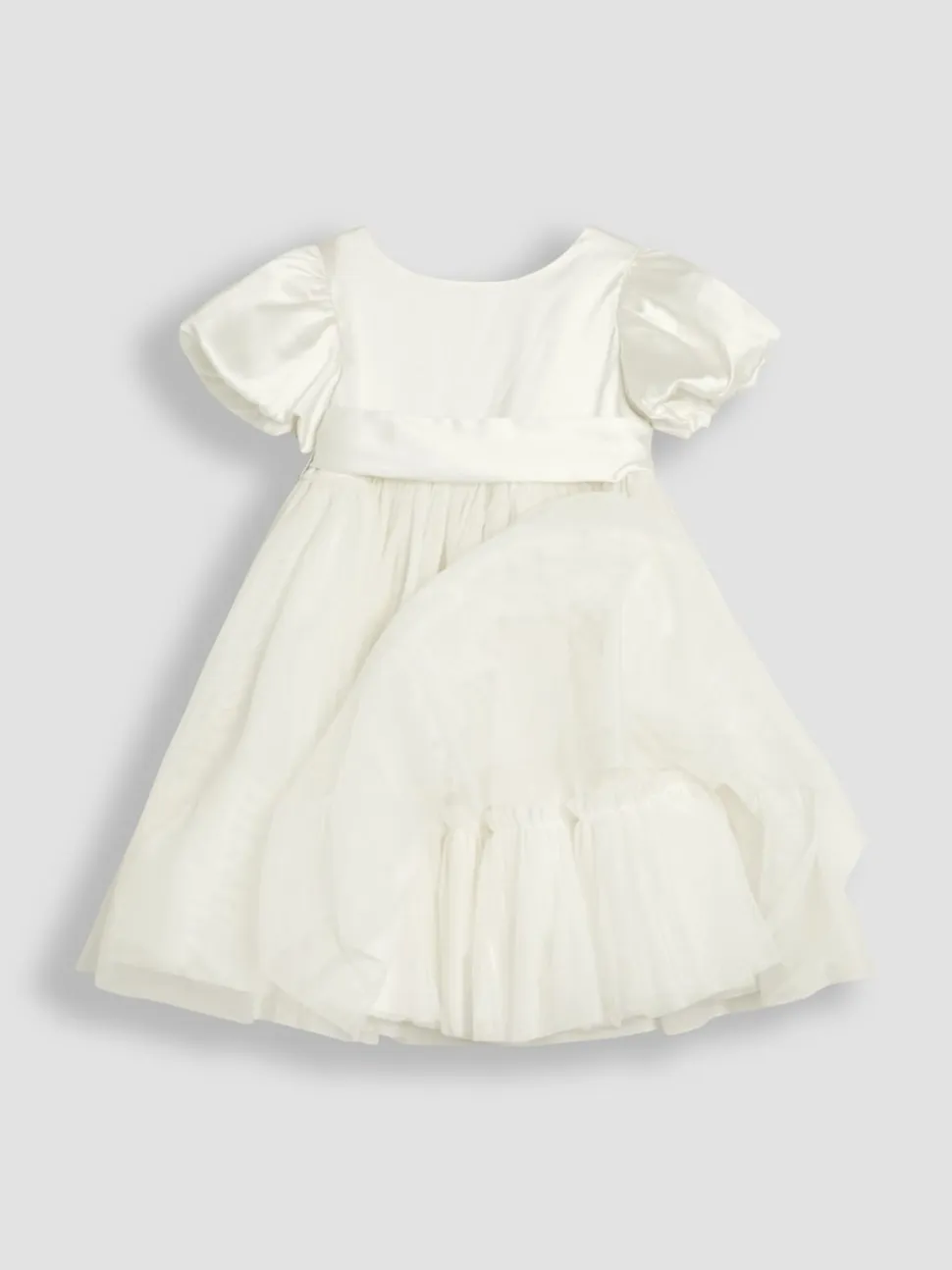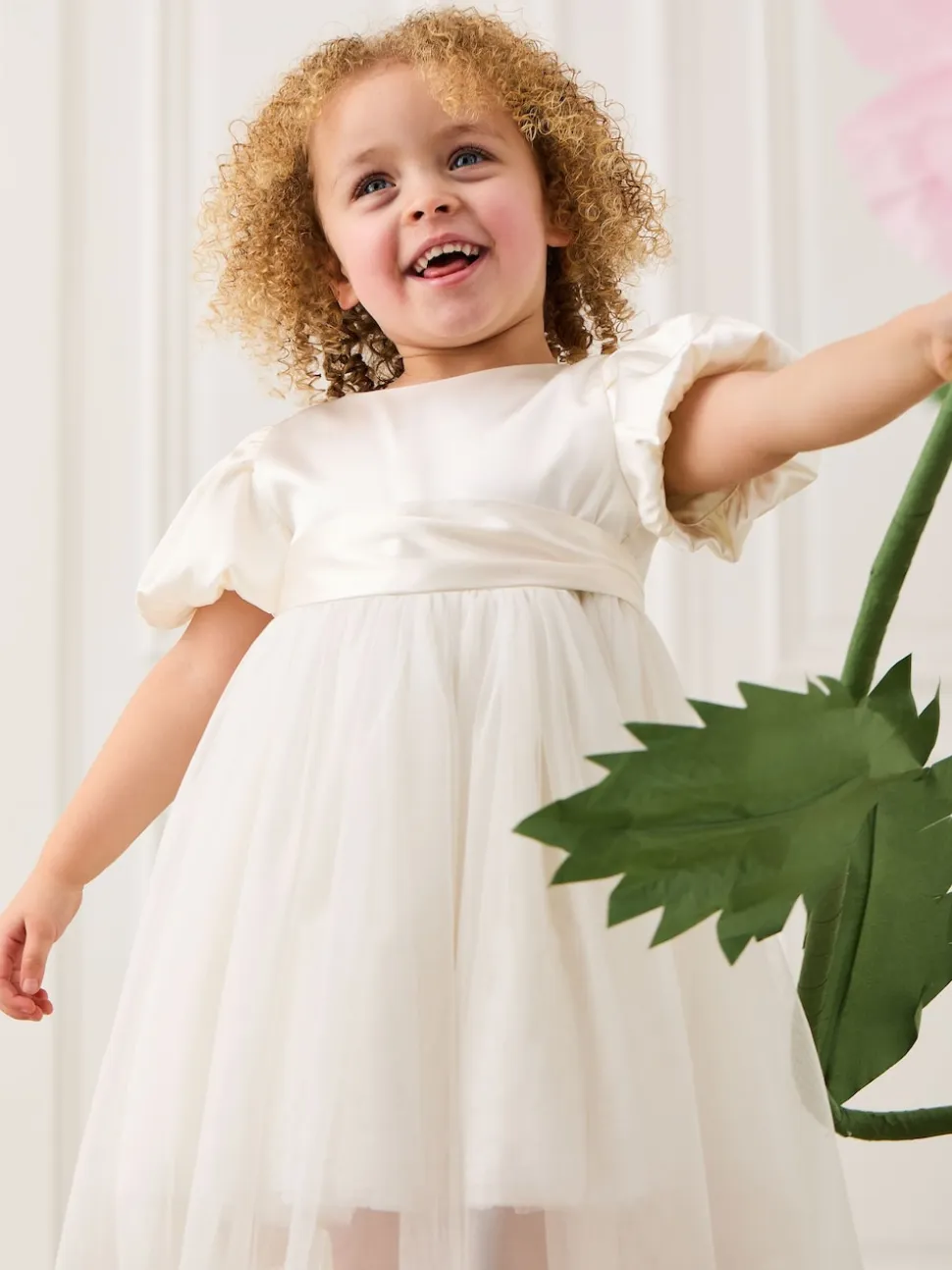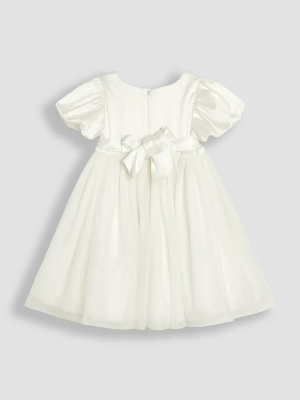 JoJo Maman Bébé Cream Balloon Sleeve Satin Sash Flower Girl Dress