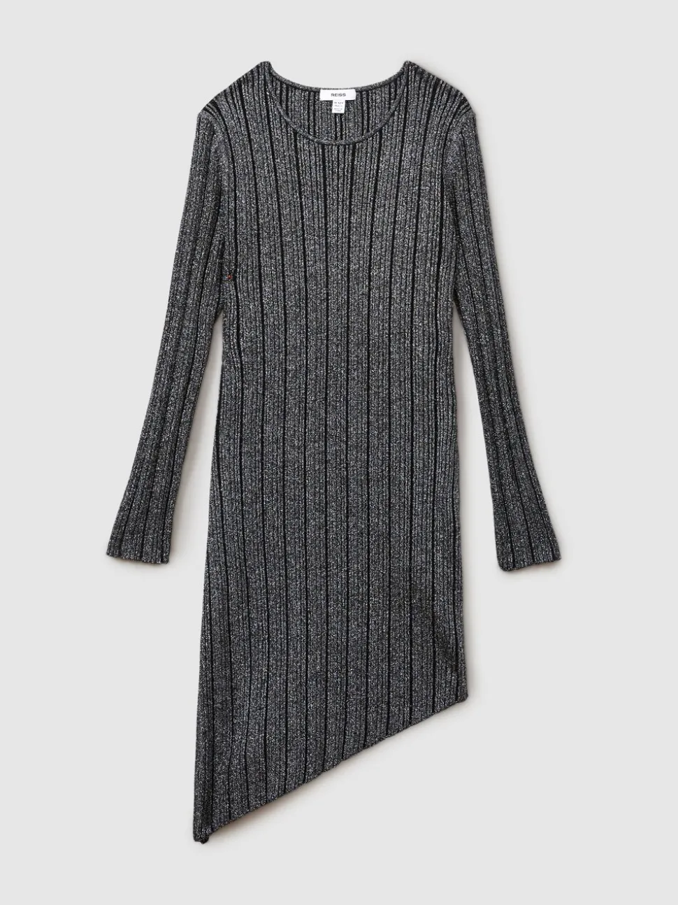 Reiss Black Jayden 9-13 yrs Metallic Ribbed Asymmetric Dress