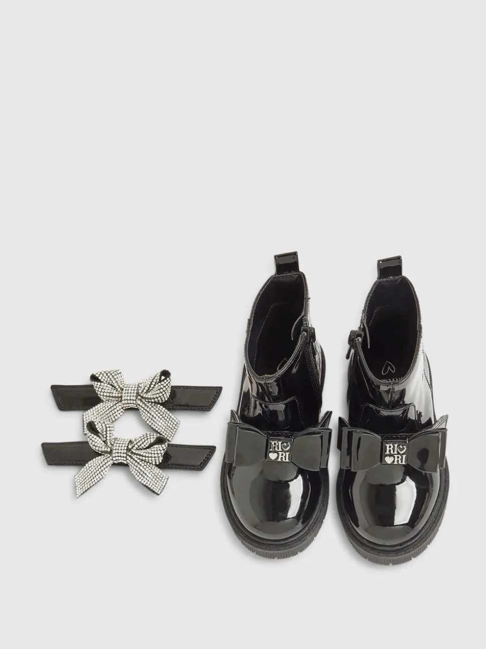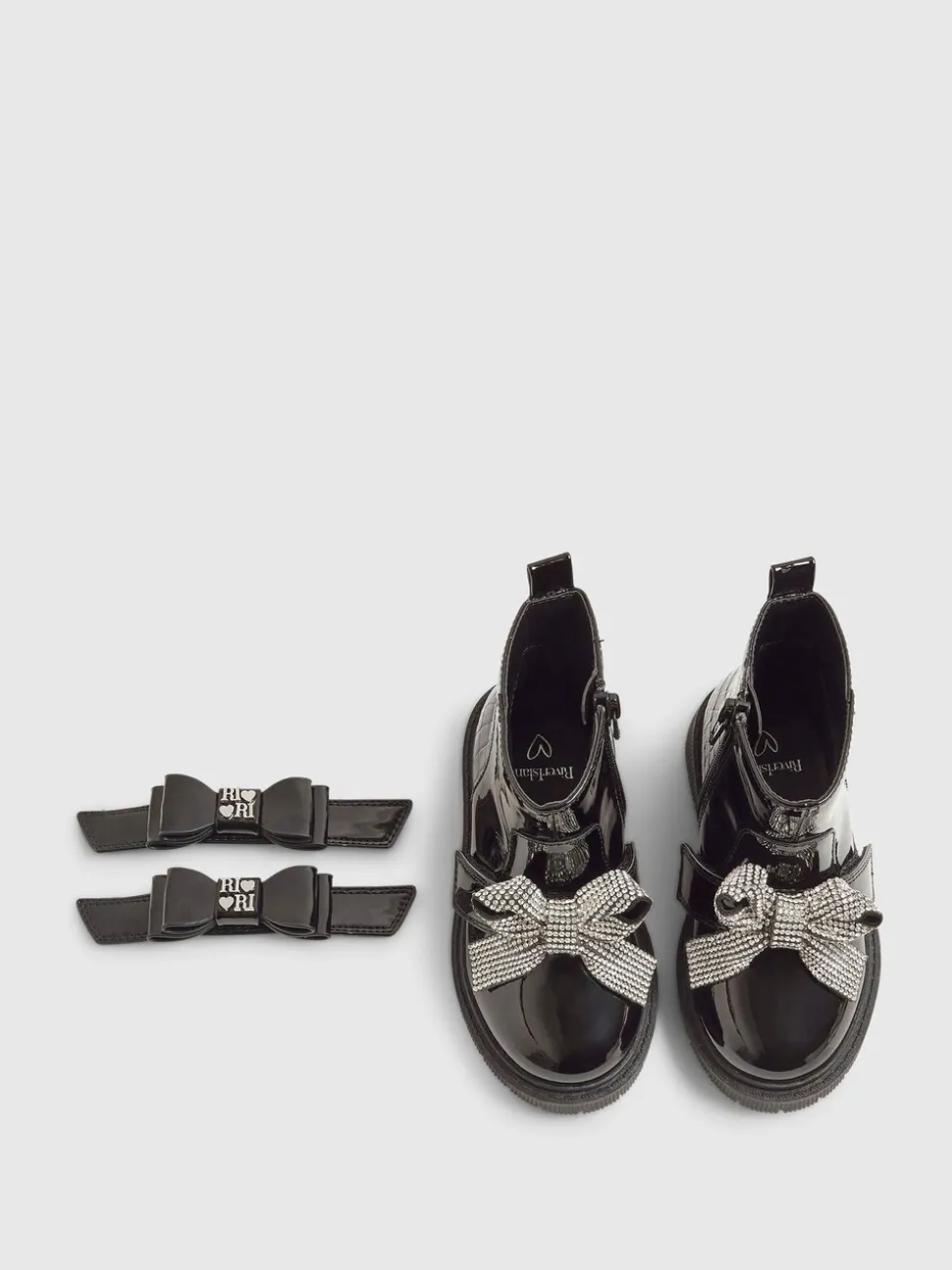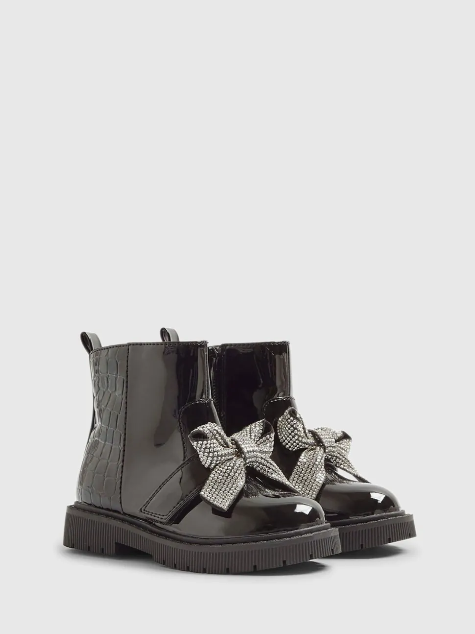 Changeable strapsCroc printPatentFlat shoesRound toeBranding Bow detailDiamante embellishedZip fastening Main – 100% PU. Lining – 100% Rubber. Sole – 100% Rubber.