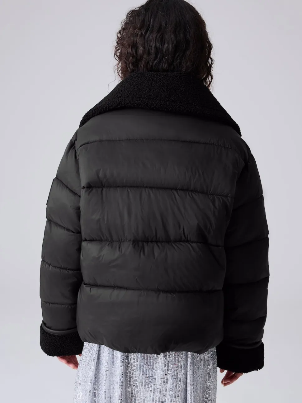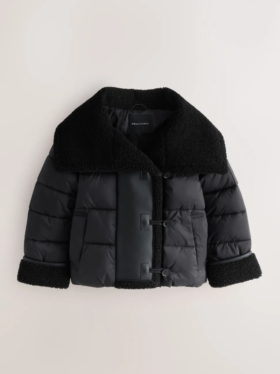 Get them ready for colder weather with the smALLSAINTS Black Padded Aviator Jacket. This jacket is a cool, cosy take on the classic aviator style. It features a plush faux shearling collar and rolled sleeves for a snug fit and added warmth. The jacket secures with a modern button closure and includes a signature arm badge. It offers practical storage with two side pockets and one internal pocket, making this padded jacket a stylish and warm essential for the season. Faux shearling collar Button closure Aviator styling Machine washable. Main 100% Nylon. Panel 100% Polyester. Body Lining 100% Polyester. Wadding 100% Polyester.