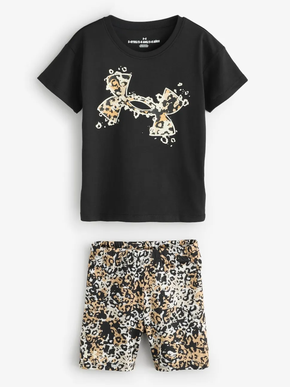 Under Armour Black/Animal Animal Print T-Shirt and Bike Shorts Set