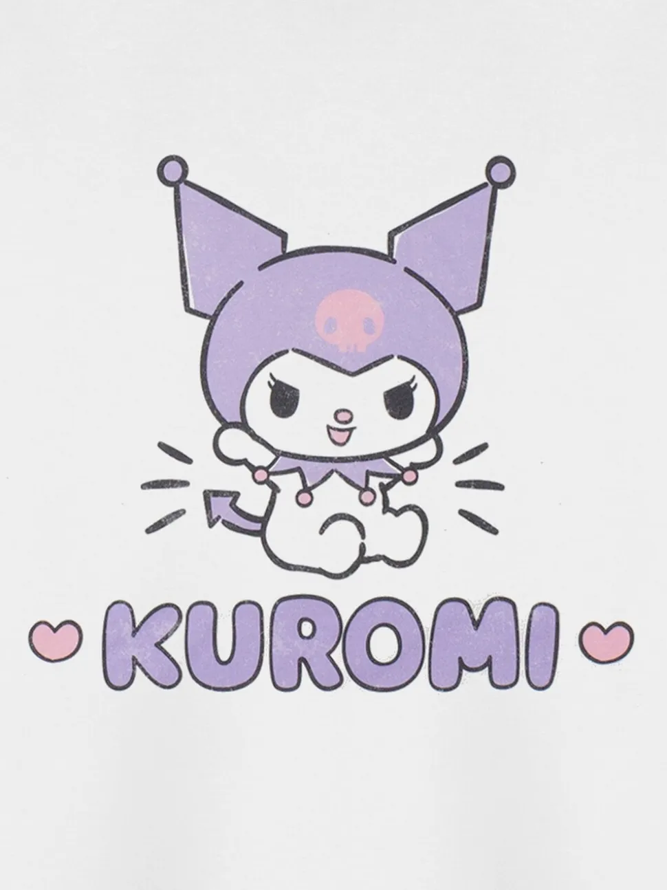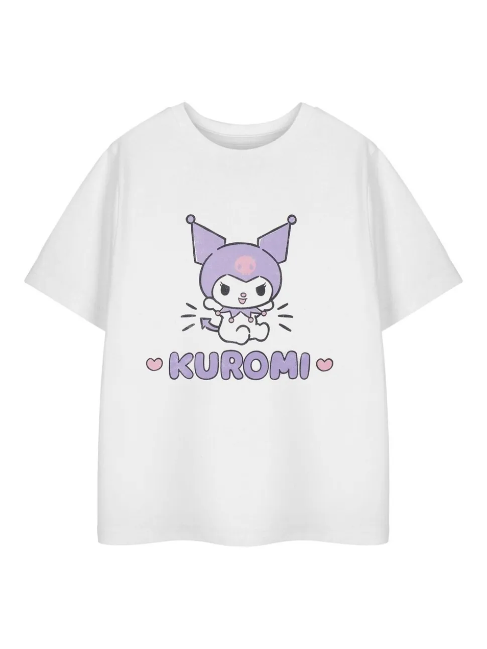 Let your little one show off their playful side with this Hello Kitty Kuromi Pastel white t-shirt, made from cotton with a cute yet edgy design. Soft, stylish, and machine washable. Machine washable. 100% Cotton.