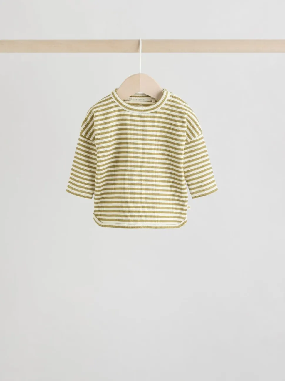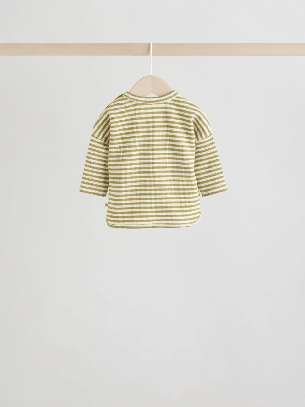 A must-have for their everyday wardrobe, this 6 piece set offers a soft and stylish foundation. The striped jersey tops with mock wood button details are perfectly paired with leggings, creating a cosy and comfortable look for any occasion. 6 piece set Mock wood button through front placket Striped top and legging Woven side tab Soft jersey fabric Machine washable. T-shirt, T-shirt, T-shirt, Leggings, Leggings and Leggings 95% Cotton, 5% Elastane. Warning: Keep away from fire and flames.