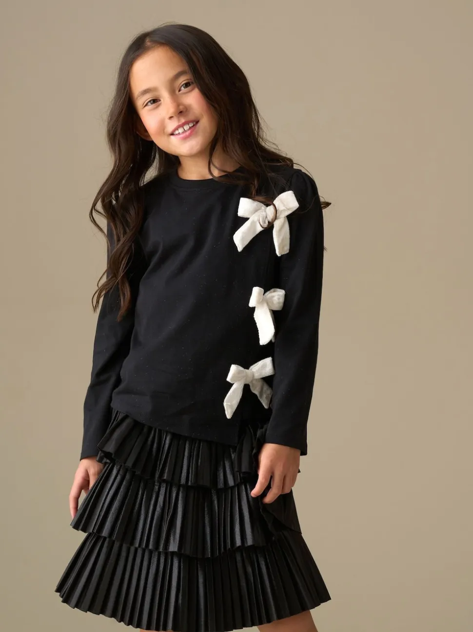 Angel & Rocket Black Eliza Asymmetric Bow Long Sleeves Top