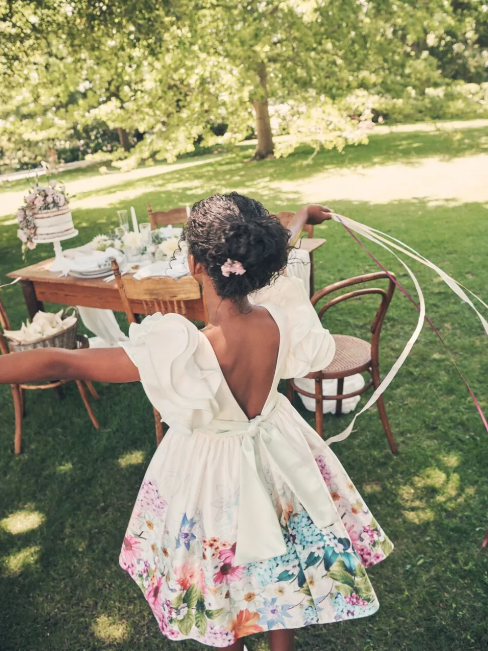 Angel & Rocket Cream 100% Cotton Border Print Emillie Tie Sash Dress