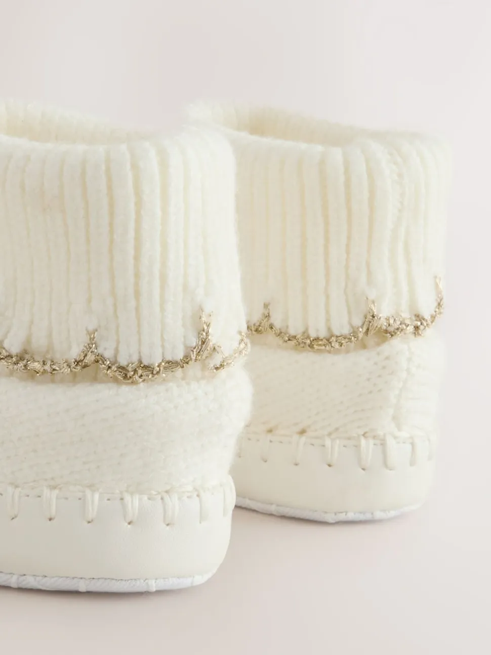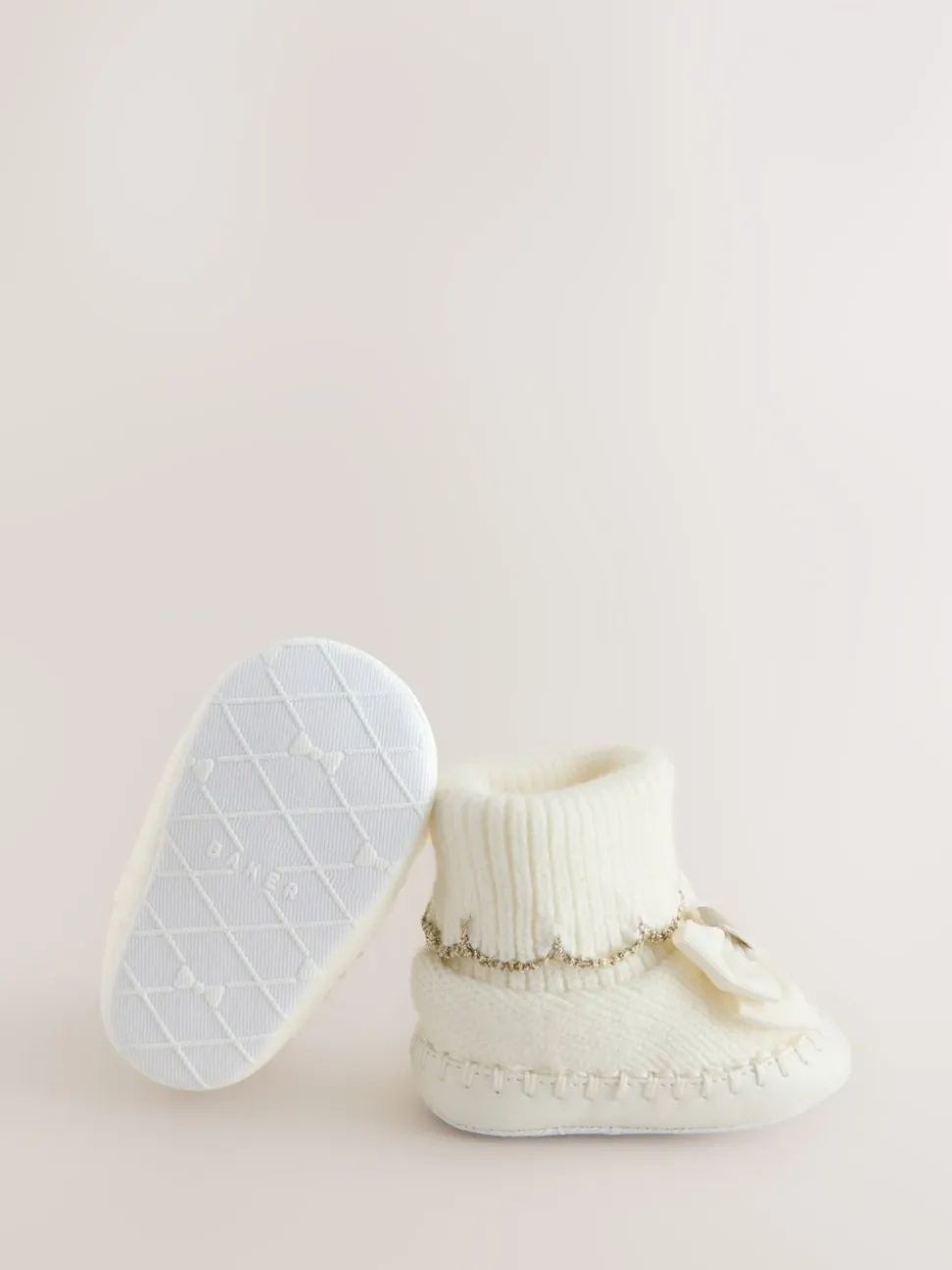 Baby Girls Scallop Edge Knitted Padders Booties with Bow
