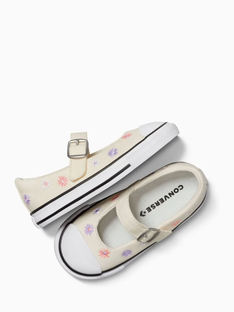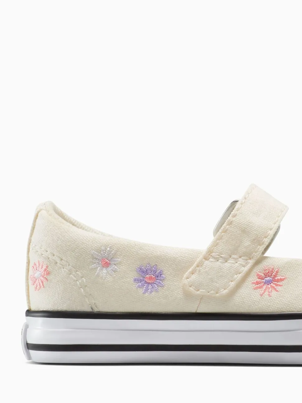 Petal-popped Chucks to put a little extra bounce in their step. An easy-on strap and bright florals bring that frolic-through-the-flowers feeling—any time any place. Canvas upper with that signature Converse look and feel. Soft foam underfoot cushioning helps support comfortable play. Adjustable strap with a decorative buckle helps with easy on and off. Ultra-low profile nods to timeless Mary Jane styling. All-over embroidered florals add a delicate touch to their look Upper – Textile, Lining and Sock – Textile, Sole – Other Materials.