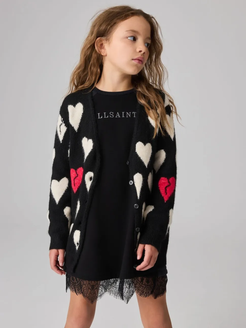 smALLSAINTS Black Amore Heart Girls Long Knitted Cardigan