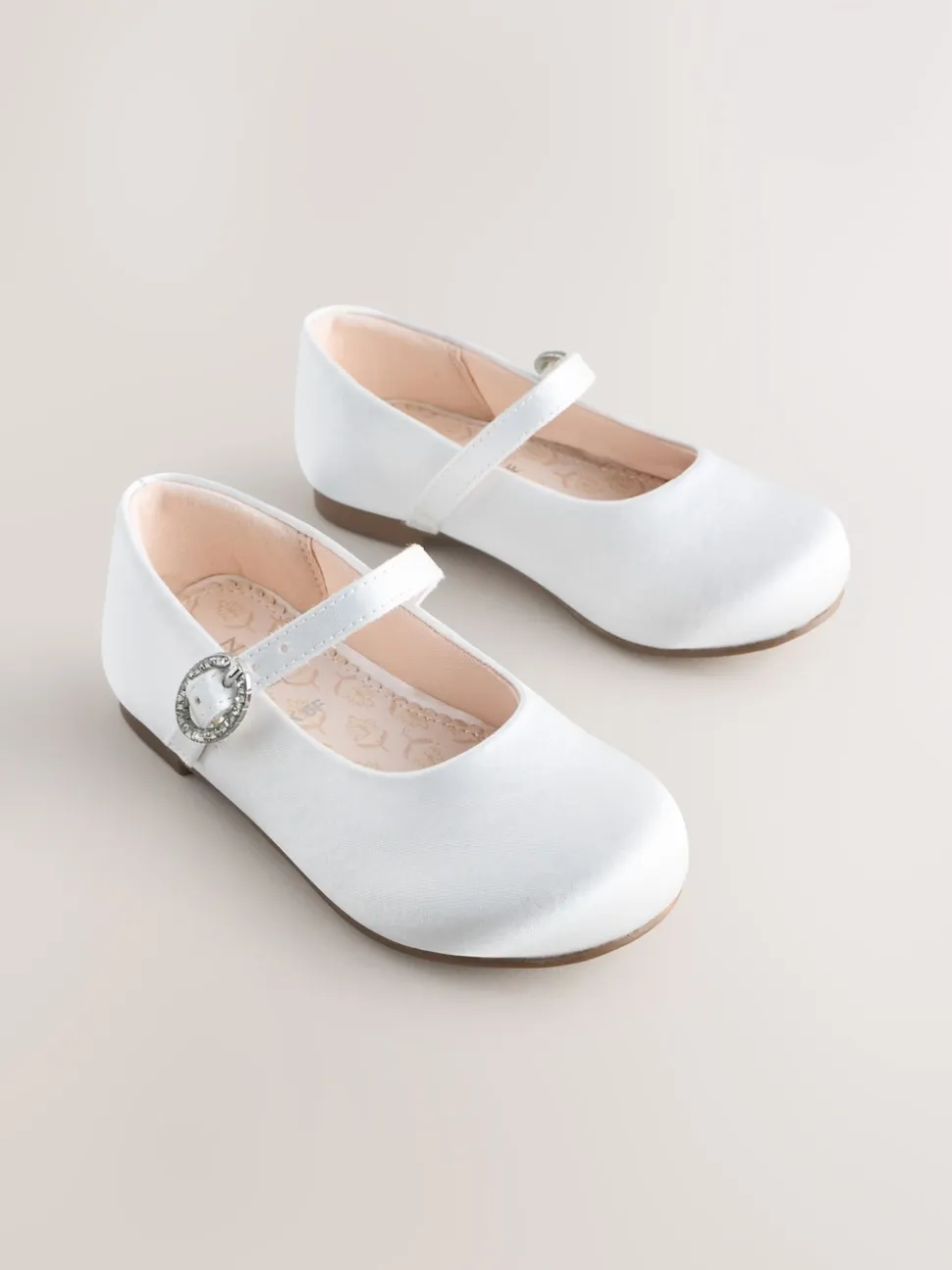 Make her feel like a princess with these charming white Mary Jane shoes, perfect for a flower girl or any special occasion. The soft finish and classic design create a beautiful, elegant look. Featuring an adjustable buckle fastening and a slip-resistant durable sole, these shoes are both secure and comfortable for dancing the day away at a party or formal event. Adjustable buckle fastening Slip-resistant durable sole Standard fit Mary Jane shoe style Smart/Occasion/Party use Round toe Upper – Textile, Lining & Sock – Textile, Other Materials, Sole – Other Materials.